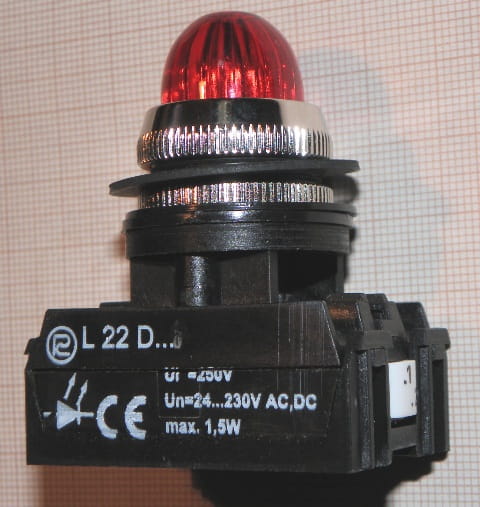 Lampka sygnalizacyjna L22D diodowa, świecąca światłem ciągłym.